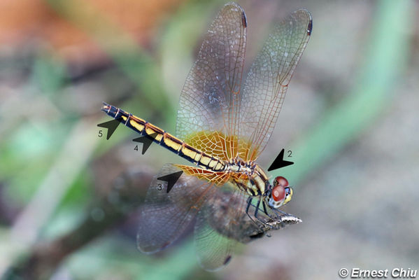 4. Black vertical stripes on dorsum and two sides of abdomen